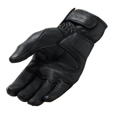 Supple drum dyed cowhide outer Vibration dissipating gel palm Pre-curved ride-friendly design Charcoal reflective logo Hinged fingers for added de...