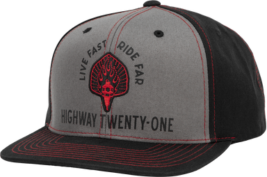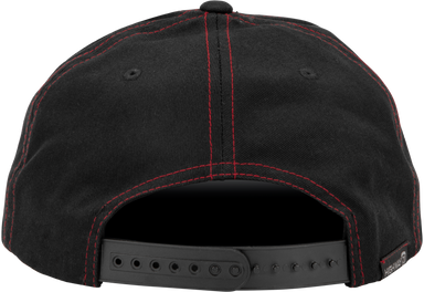 Six panel adjustable snapback with embroidered artwork.