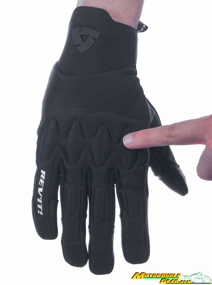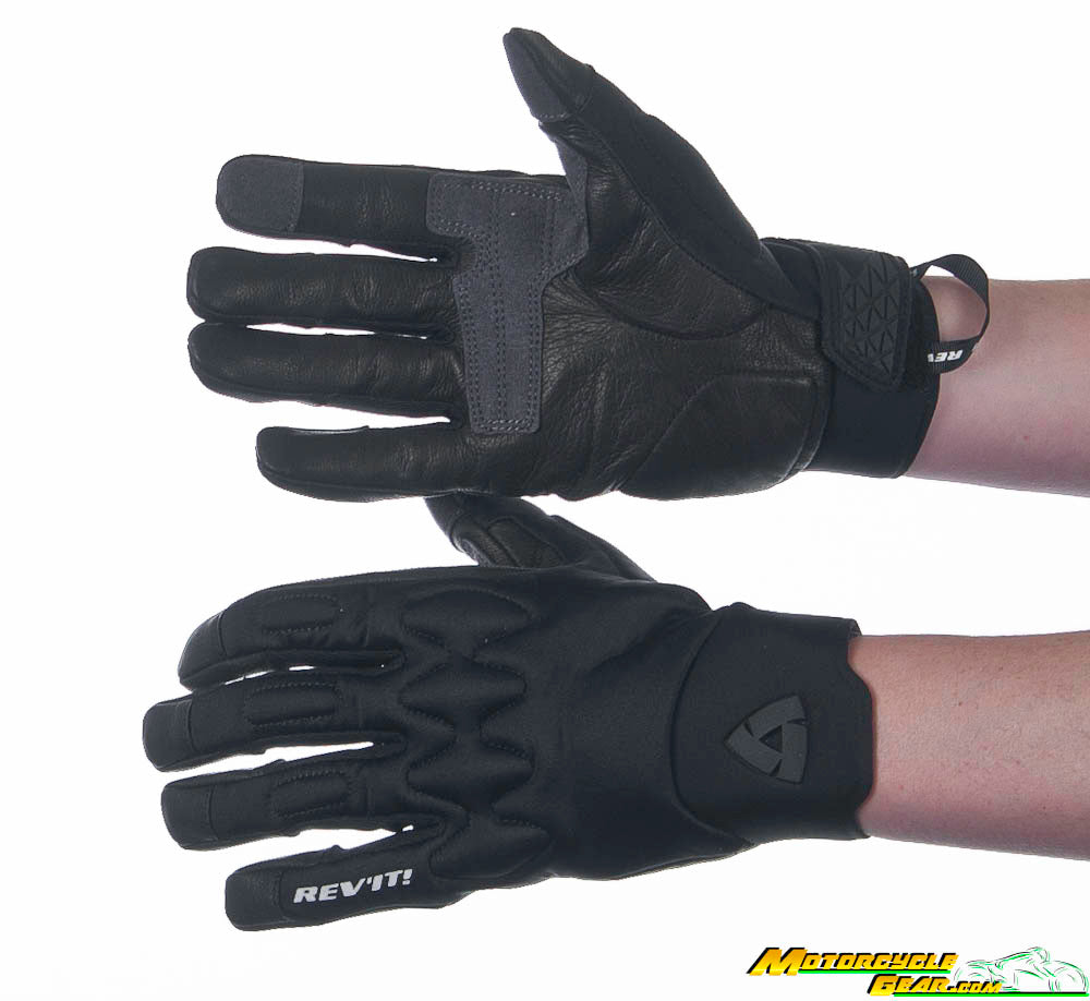REVIT says: The REV’IT! Spectrum Gloves are a lightweight glove for riders seeking versatility in their stop-and-go urban blasts. A mix of leather at the palm and REV’IT! PWR|shell sublimated knit at the back of hand keep you cool in warm conditions. This stretch knit component delivers airflow and abrasion resistance to compliment the semi-rigid knuckle protectors and impact absorbing Temperfoam padding at the knuckle, fingers and palm to mitigate impact. A layer of PWR|shield underneath the leather palm provides an extra layer of abrasion protection. The gloves achieve a CE certification, and smart touch fingertips keep you connected to the non-moto world.