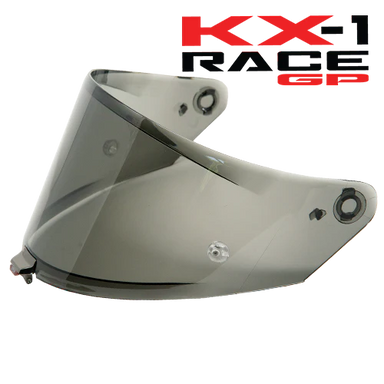 KYT KX-1 Race visor with proprietary locking latch system. Tested and proven in MotoGP. Compatible with Pinlock 120XLT Max Vision.