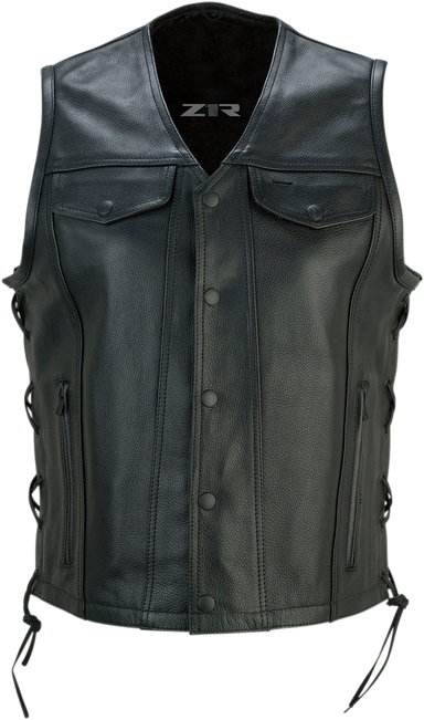 The Gaucho vest is the most simple design of the vests we carry from Z1R. It's a V-neck, more western design and it has the lacings down the sides...