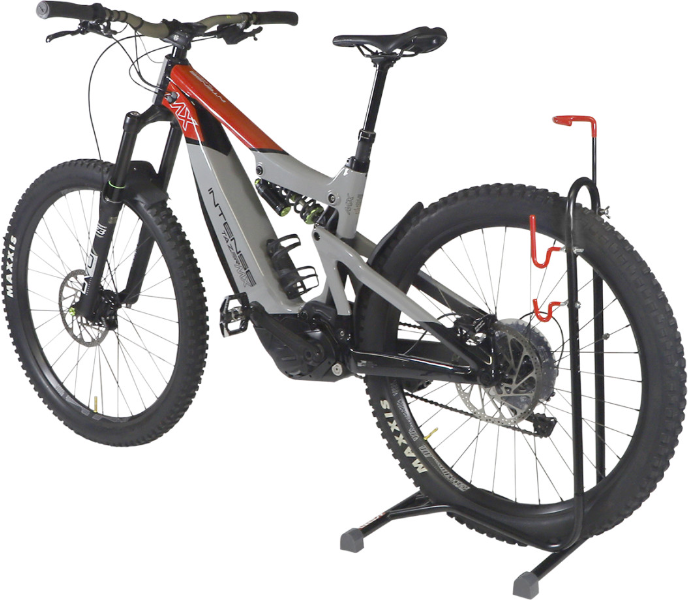 - Vertical bike position is space saving, while still providing safety and stability, and allows for maintenance on the front wheel