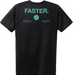 - Classic screen printed t-shirt with Dot logo on chest and Faster logo on back
