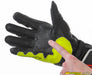 Other than the odd finger fit the gloves feel great and offer all the protection you would expect from an Alpinestars track style glove: knuckle protection, pinky bridge, palm slider, and several Dynamic Friction Shield protectors in key areas like the cuff, palm, and fingers. A dual cuff closure system means you can get a well adjusted, snug fit. The index fingers have connective material and they seem to work well on both Apple and Android devices here at the shop, though it is odd they did not put the same material on the thumbs. These gloves do feature some perforations on the palm and back of the hand so they should perform well on warm to hot days.
