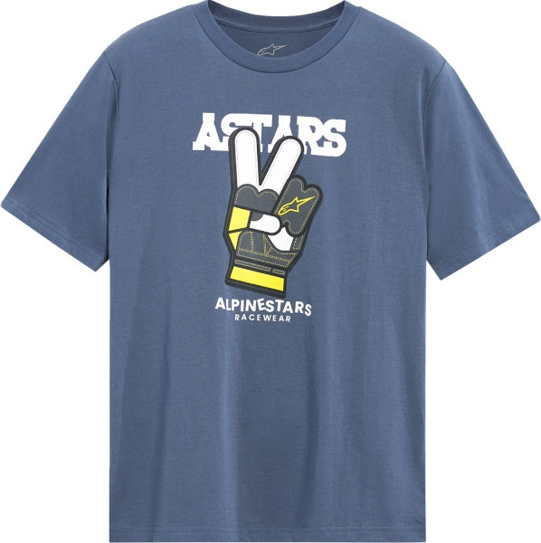 - Illustrated cartoon style road riding glove artwork on t-shirt