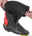 The boots, of course, have full-on racing features but are comfortable and functional so they could be used for sport/street riding as well. There is a substantial amount of protection on either side of the ankle and heel and also in the shin area. The “Multi Link” control is a series of external plastic pieces that slide and pivot to allow movement in some directions (for shifting, walking, etc) but restrict movement in unfavorable directions (those that cause injury). Most race boots today have similar systems. With past versions of the Multilink, we heard from folks who said they squeak when they walk. So far, with this new model, I don’t hear that characteristic squeak, so fingers crossed they worked it out.