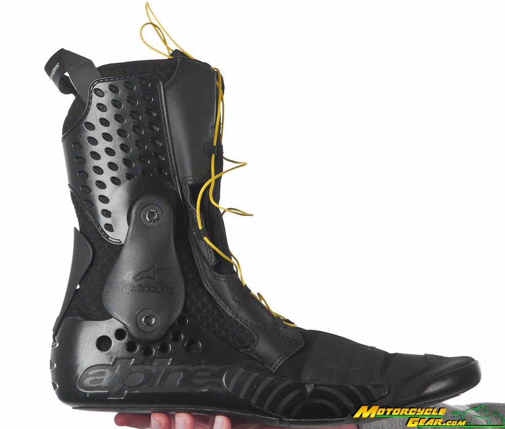 These boots have just about everything you’d want in a racing good, plus they’re comfortable! You get all the protection you would expect including a stiffened shank, TPU shifter, TPU shin, and TPU/aluminum toe slider. The inner bootie comes out so you can get it on comfortably and then put the boot on. This bootie keeps limits your ankle’s movement in a crash and is pretty heavy duty while still feeling very comfortable. The boot itself has a full zip opening on the lateral side (outside), this would normally be a complaint point for me as the medial (inside) zippers are easier to reach when you’re geared up (and not as in shape as a sportbike racer, haha) but these are easy enough to zip up. The cuff of the boot also has some grippy material (silicon?) so they’ll help keep your pant leg in the boot.