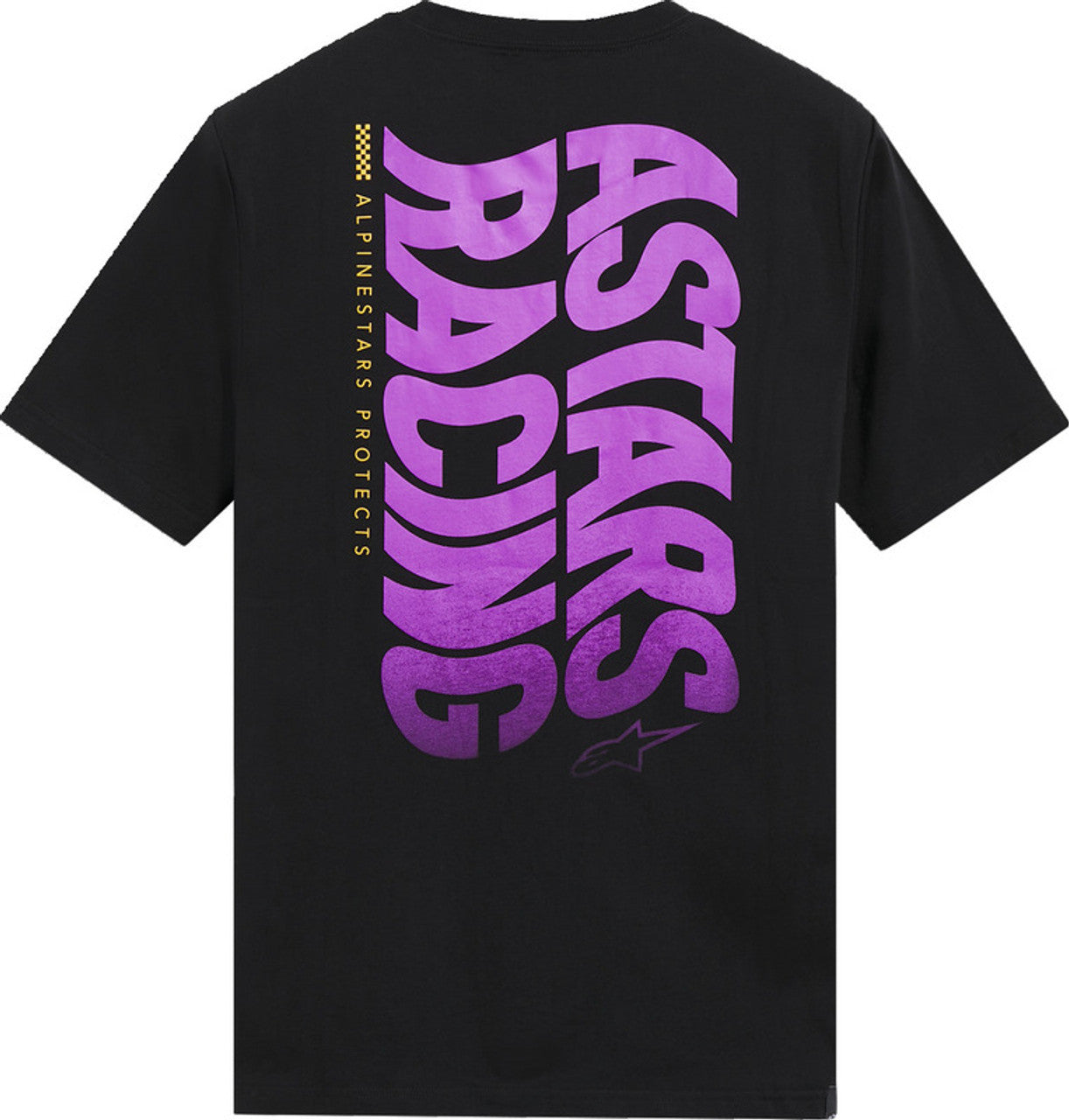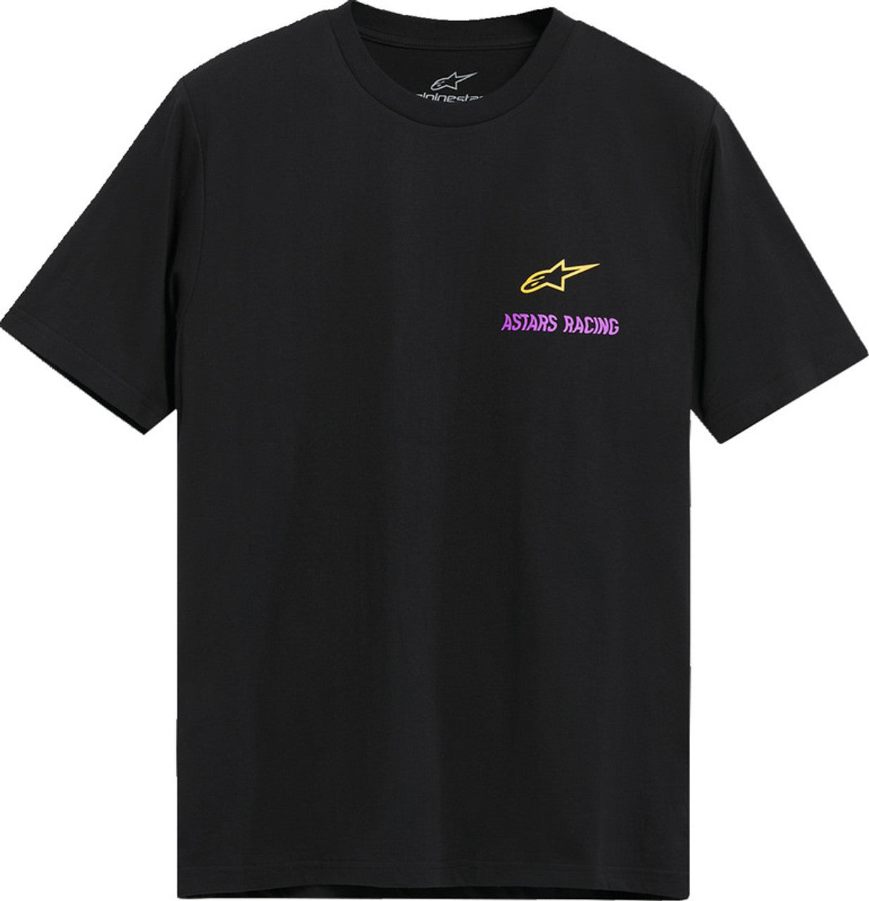 - Distorted vertical Astars word graphic on back and logo art on front of the t-shirt