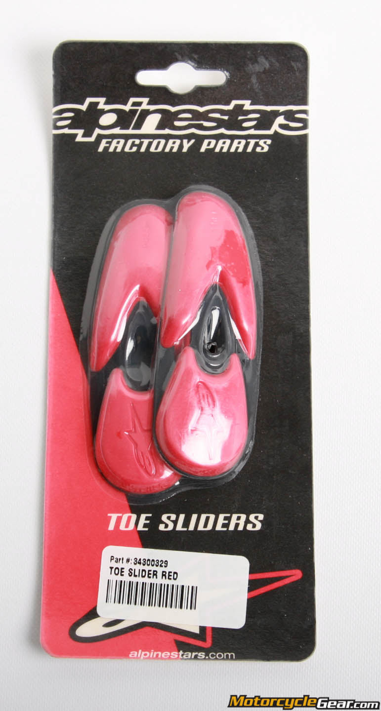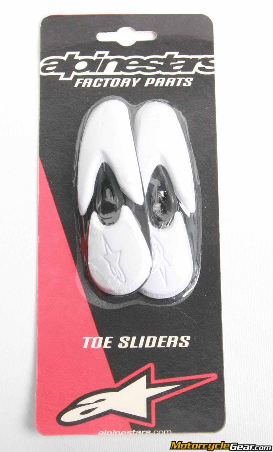 Here is what Alpinestars says about the magnesium sliders: The magnesium composite toe sliders last up to four times longer than the plastic-based sliders. They do not get hot and give excellent feel and feedback. They add leverage when maneuvering the bike around corners on the track and according to Alpinestars they are the slider of choice for AMA Superbike, British Superbike, and World Superbike riders.