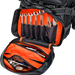 - Padded laptop sleeve with elastic retainers in the main compartment