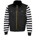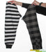 And now let’s discuss the star of the show…the optional sleeves! You have not one, but three choices… leather with knit cuffs, flannel, or what I call “convict” sleeves (black and white striped cotton). Use no sleeves at all for “vest mode”, or make your choice. But please don’t mix and match!