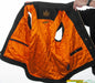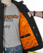 The main vest here is very much like the Cortech Thunderbird vest. It is made of a heavy canvas which reminds me of durable workman’s clothing (think Carhartt). You can go with the normal shirt style collar made of matching canvas, you can add a cotton hood, or you can add fur around the canvas collar for colder weather use (but no, I tried and you can’t do the hood and fur collar together). Cortech’s description says it is “insulated”, but I feel only a VERY thin layer of material quilted to the back of the satin liner. It feels nice, but don’t get the idea this vest can be used to add a significant layer against the cold.