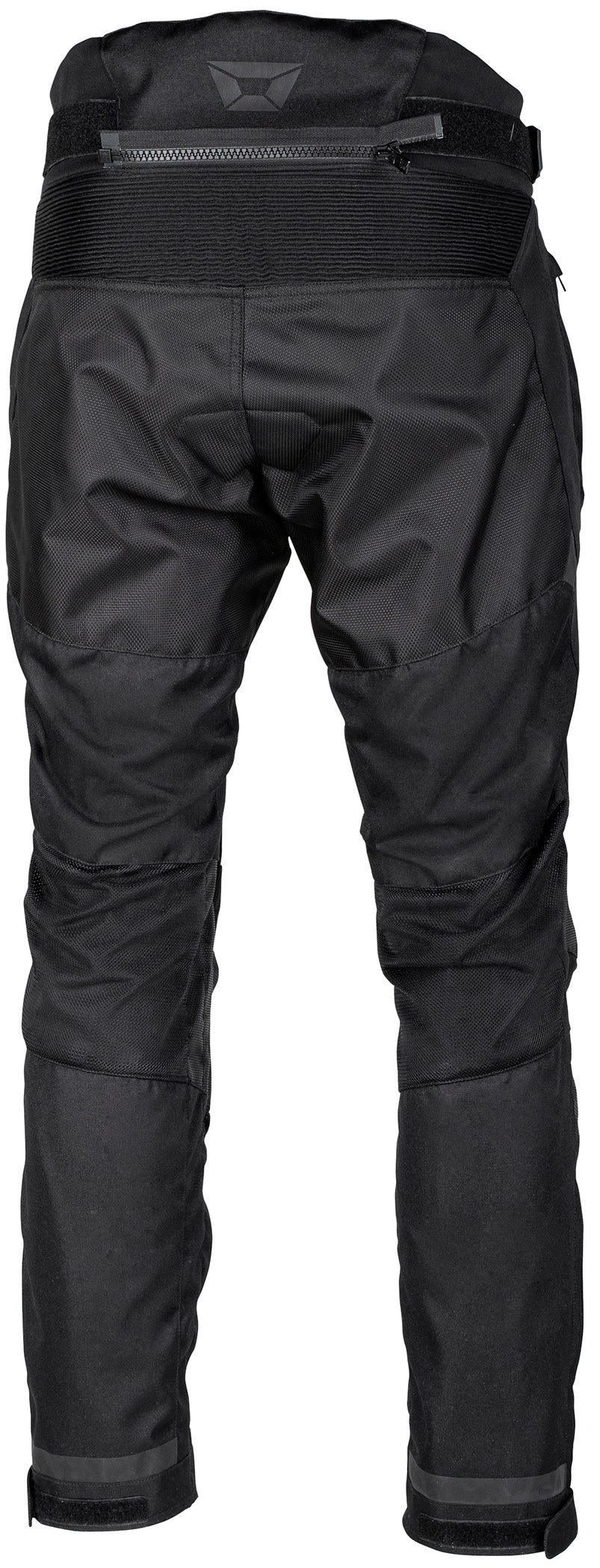 On the back of the pant there is a stretch accordion panel. This panel gives you some flexibility at the waist if you connect the pants to a jacket using the 8 inch connection zipper which includes the mating half. There are two reflective strips at the cuff, above the knee, and the Cortech logos at the waist is reflective as well. CE level 2 knee armor is included in height adjustable pockets. These pockets use hook and loop stops to set the armor height. The hip pockets have a foam pad included and this can be upgraded to a CE level protection, see the related products below.