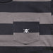 - Vintage inspired striped pattern with embroidered chest pocket artwork