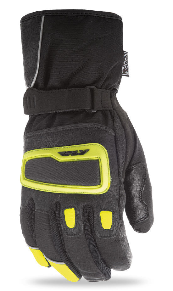 The Xplore gloves from Fly Racing are a simple winter/waterproof design made of a mix of textile materials and leather. They have a few more features than their most basic gloves and a few less than their highest end winter gloves. Like the others, these include a waterproof liner (brand name Hipora) situated between the glove’s outer shell and inner fleecy lining. And the gloves also some a layer of insulation to help with the cold. I’d characterize the level of insulation to to be “light to medium”.