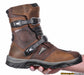 The specs of these boots are similar to other adventure riding boots. They have a heavy duty molded sole with a beefy looking tread pattern and the sole has impressive stiffness as well as a steel shank, so they’ll hold up to standing on pegs. The leather used is STIFF as compared to most others. I wouldn’t say they are in the league of a full-on off road boot, and certainly the leather will break in and become more flexible, but they are certainly more stiff than any regular street riding boot and the stiffness will give you confidence in the boots’ ability to provide support and protection. The boots have solid protectors on each side of the ankle bone that is situated between the boot’s padded lining and the outside leather which will keep those from rubbing on you. Also, those are a bit “cup” shaped to fit over the ankle bone comfortably.