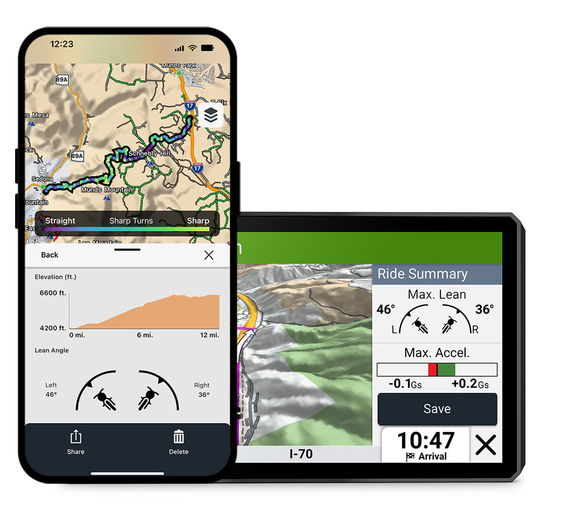 View and share your lean angle, G-force data, max speed and more in your ride summary with the Tread® smartphone app.