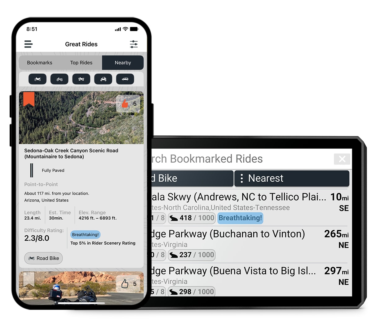 See popular moto paths ridden by other riders to find new and exciting routes to explore.