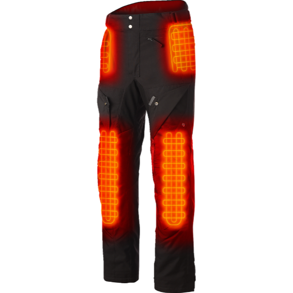 Heated socks or insoles can be easily added to the pant by utilizing the connections at the bottom of the pant cuff