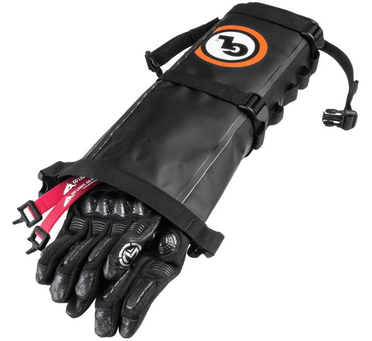 *The Roll-Top Possibles Pouch is RF-welded, 100% waterproof and dustproof with a roomy 3 liter capacity. Enough room to carry a full set of tire irons, a spare tube, 2 liter fuel canister or anything else riders might need to secure any vehicle for adventure. Adds easy access storage capacity to Giant Loop saddle bags and panniers, as well as anchoring to engine guards, crash bars, tail racks and any other secure attachment point.*