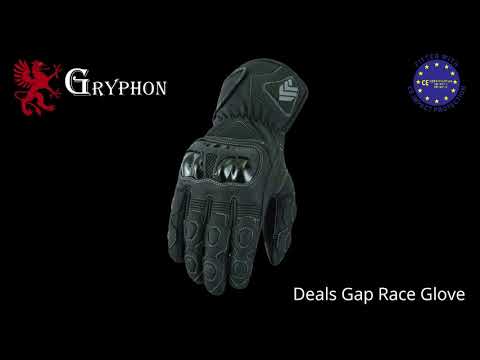 The Gryphon Deals Gap leather motorcycle gloves are designed for the long haul. They offer a goat hide construction for water resistance and enhanced grip. With an adjustable gauntlet style cuff and double hook and loop tab closure with TPU knuckle protectors and touchscreen compatibility, this motorcycle glove checks off all the boxes.