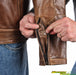 For impact protection, you get shoulder and elbow armor and a foam back pad. All is removable though if you don’t want to use it (or if you decide to wear the jacket off the bike). This Highway 21 model comes with four pockets in front… two hand warmer and two chest, and there are two inside. One of the the inside pockets is set up for conceal carry. The other would be convenient for your tech and there is a loop to run your headphone wire through. The two upper chest pockets are dual purpose. They are a pocket, but the pocket is lined withe mesh, so they can be used as vents too. Speaking of vents, there is one more horizontal vent in back in addition to the two front pocket vents. The sleeve end zippers have two way pulls so that you can zip down from the elbows end and create a functional zippered vents too. The main zipper is the same kind… you can zip the main zipper up from the bottom so that you can open up the lower few ends of the zipper if you want a little more room when in the sitting position. Overall, the venting is just average, but the lighter weight leather will help make the overall jacket more tolerable in warmer weather. There is no additional removable liner for winter. So this jacket should be good for cool to warm weather.