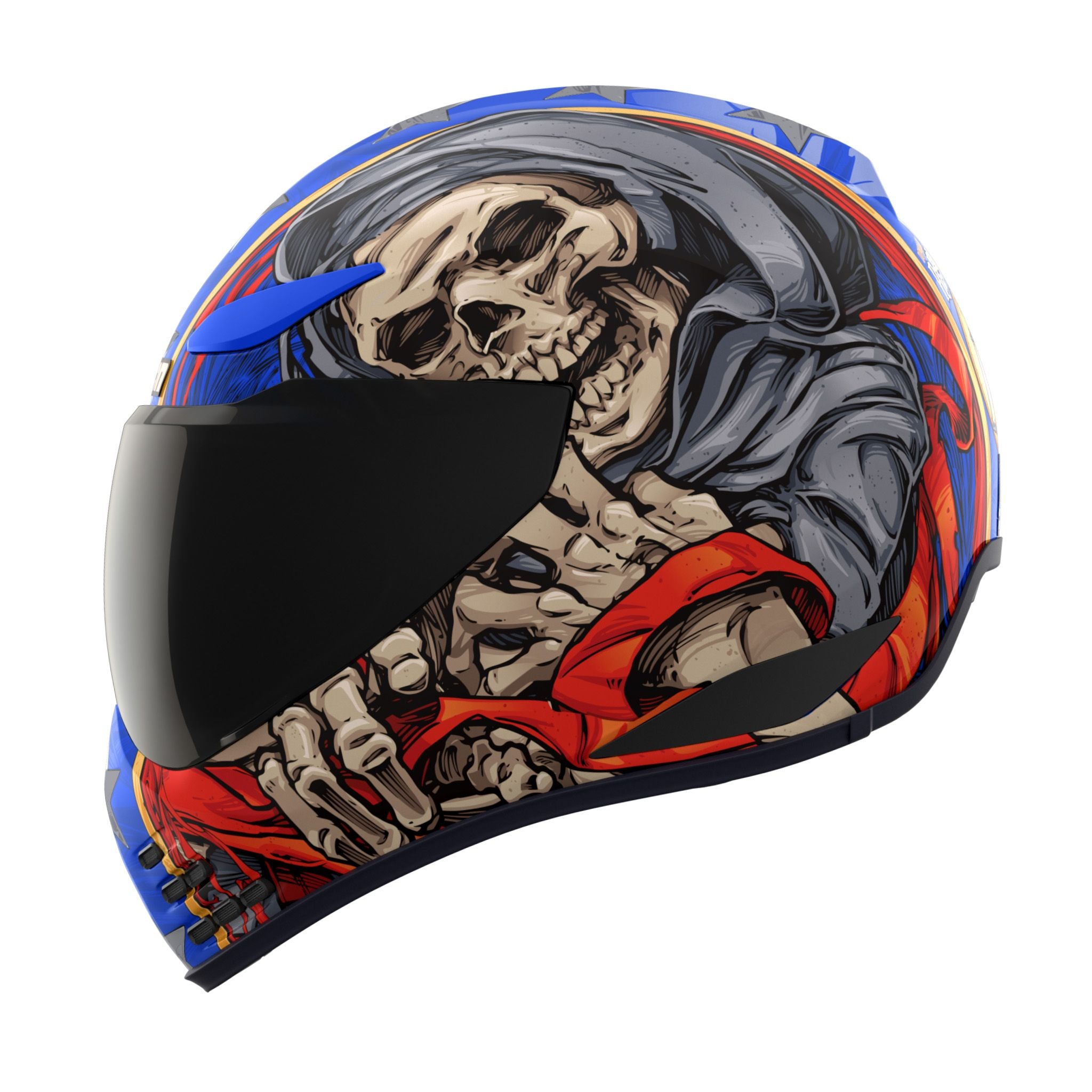 You know the historic phrase: “Give me liberty or give me Death on a helmet!” The Domain Revere Helmet helps you channel your inner patriot during your own ride, and the Grim Reaper himself is your co-pilot. The handcrafted FRP shell of this ECE22.06-certified helmet is lightweight and strong, and the Fog-Free Domain™ shield gives you a clear view of any enemies lurking ahead.