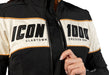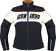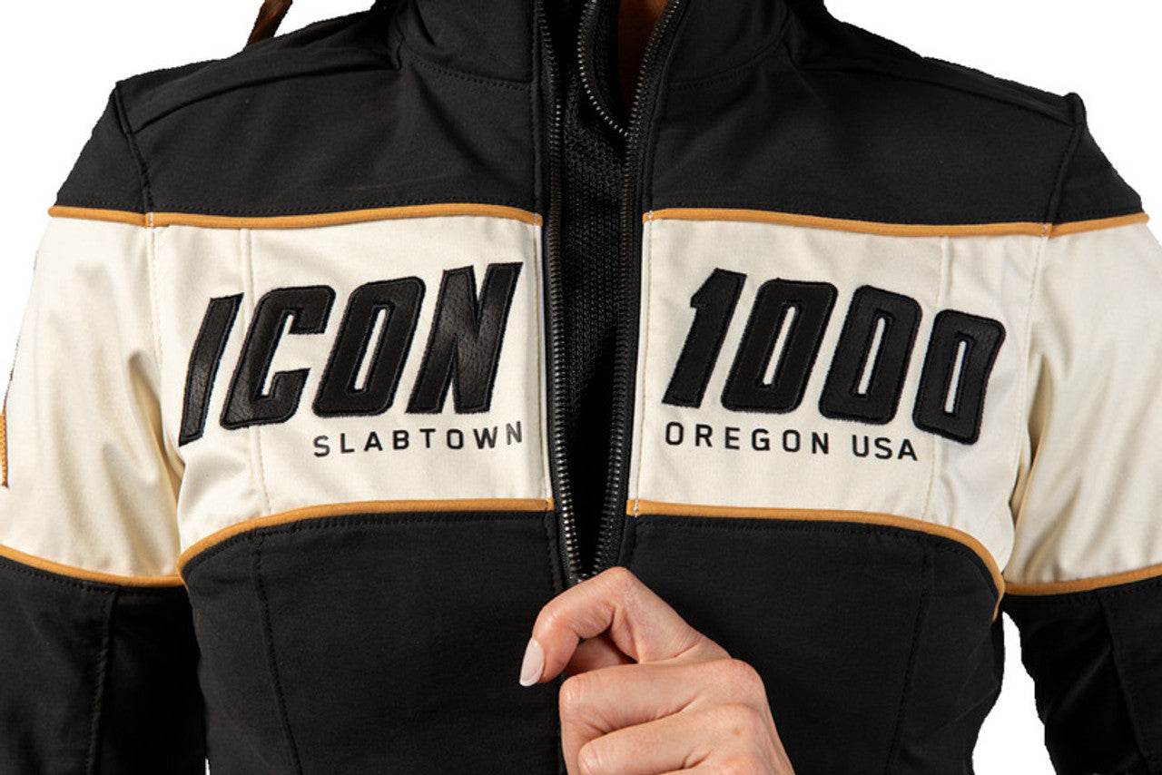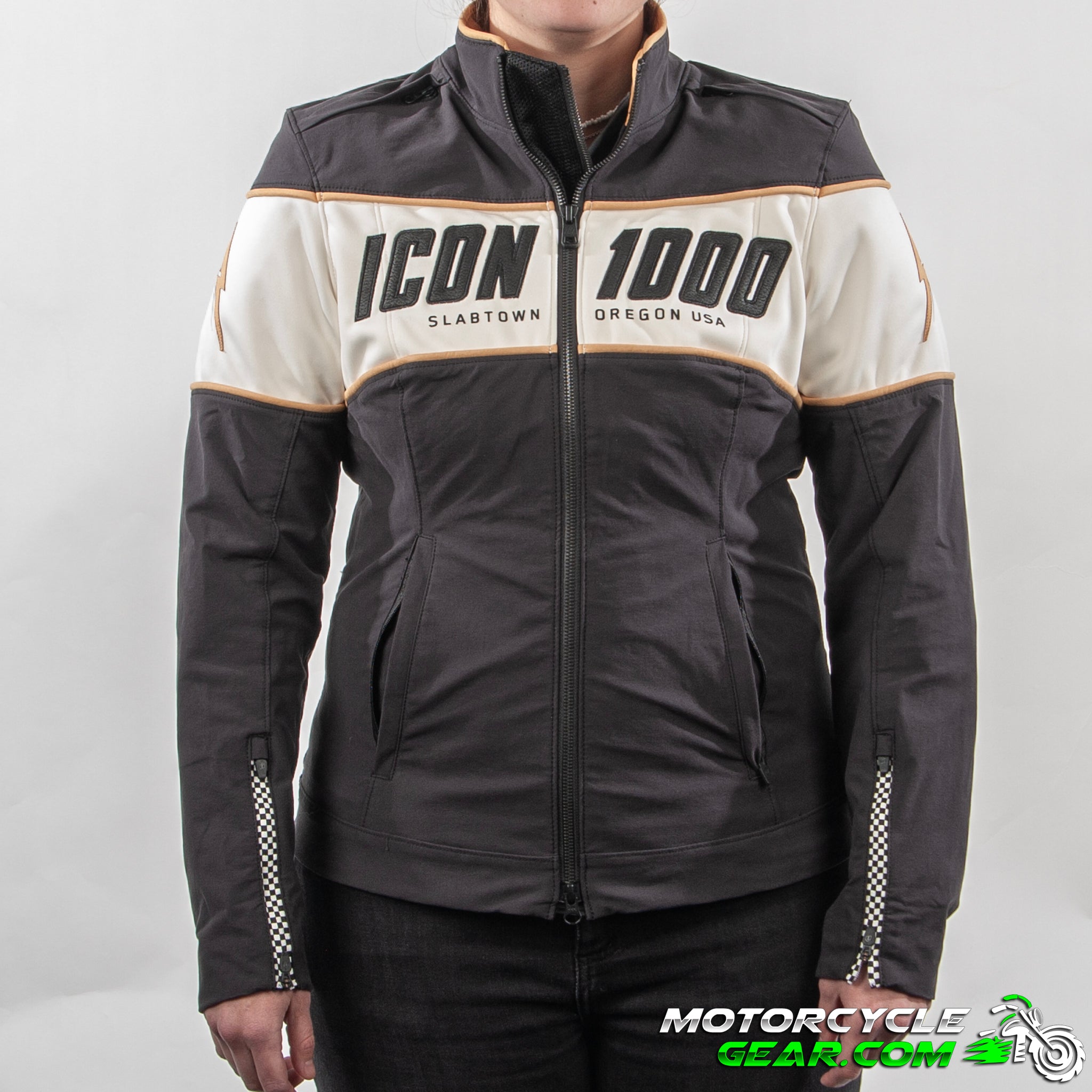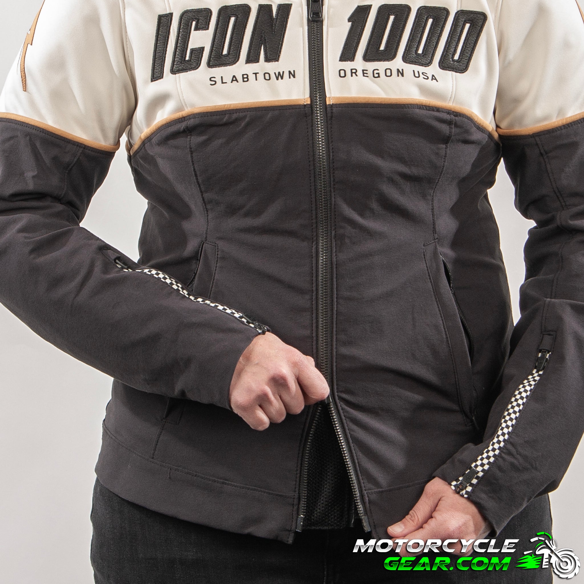 Below is the standard size chart from Icon for the fit of their women’s jackets. We measured the size large to check the chart and it measures out correctly. On the Large sample, the bust is 39”, the waist is 34” and the hip is 39”. Also we used the size large for some feature photos on our standard size mannequin Shirley (the size she normally wears) so you can click through and have a look at how that fits.