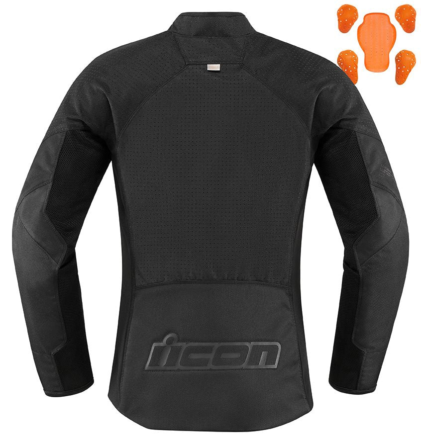 Icon says: The Womens Hooligan™ Perforated jacket is built from a fully perforated textile chassis, perfect for hot-weather riding. Integrated Iron Weave Mesh™ panels allow unhindered air flow while still providing necessary coverage. The Womens Hooligan™ Perforated jacket is equipped with a full suite of D3O® armor (back, elbow, and shoulder) to keep your ride out fully legit.