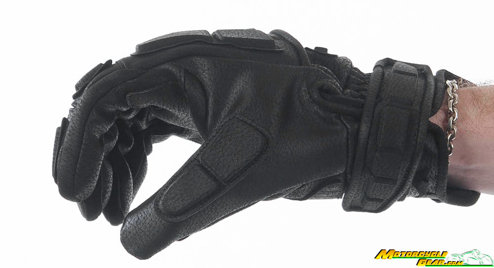 These gloves make heavy use of Ax Laredo synthetic leather. This synthetic leather has improved abrasion resistance while minimizing thickness. The palm has overlays for extra abrasion resistance in key areas of wear. On the back of the hand, fingers, the cuff, and the hook and loop closure all feature blocky padding armor. I’m not 100% certain but I believe the knuckle area is the only armor that is actually D3O and the rest are more for style and have a foam type of reinforcement hidden underneath. The knuckle is a “floating” style that has a small gap to the back of the hand.