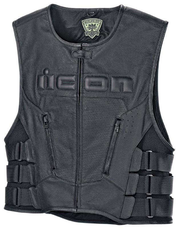 ICON has a unique vision to recognize holes in the market where a product should exist, but doesn’t. It’s part of the reason we are here. The Regulator Vest is one of those profound products that creates its own dimension. At first glance, it’s apparent that this is no mere “Fat Brother Bob’s Cruiser” vest. The Regulator is made of premium 1.4mm leather. The updated D3O® Viper back protector is removable; doing so reveals a large back panel- perfect access for attaching a club patch, or whatever you can think up. Also featured are two cross-draw pistol pockets up front. Now you can retrieve your smokes confidently, without resorting to the infamous “chicken-wing arm” technique. The Regulator Vest is sized to rock over your jacket, or just use the side fit adjustment straps to wear it alone.