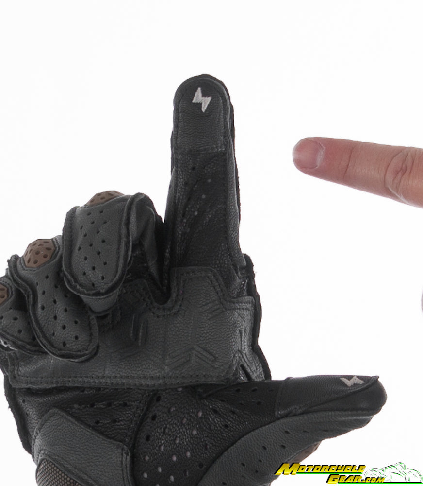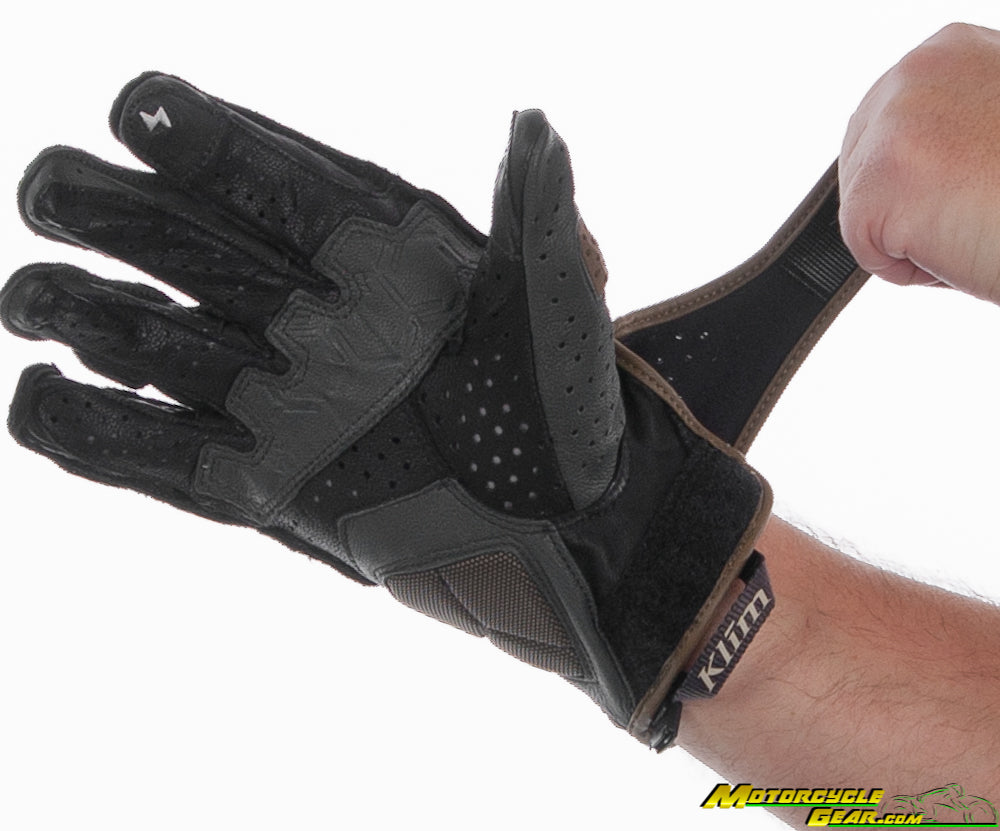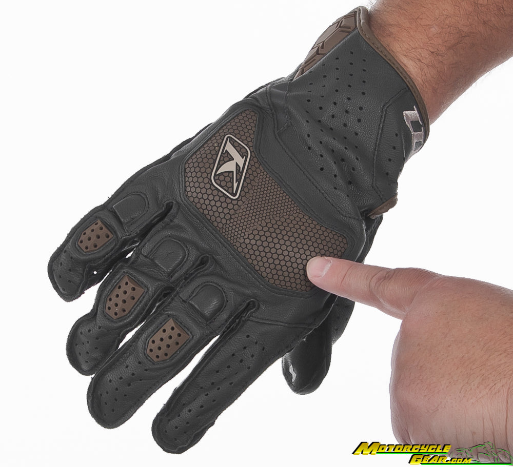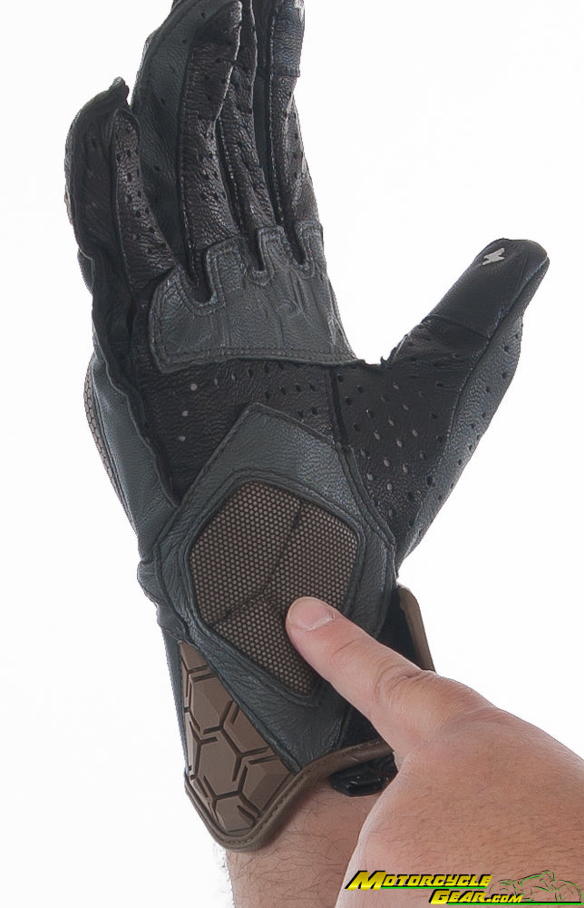 The chassis of this glove is mostly leather with areas of armor over the knuckles and in the palm etc. And about half the surface area of the leather is perforated with nice large holes to move a lot of air. There are perfs on both sides of the hands and on the fingers and thumb too, so this glove will be a great choice for weather from mild to extra hot.