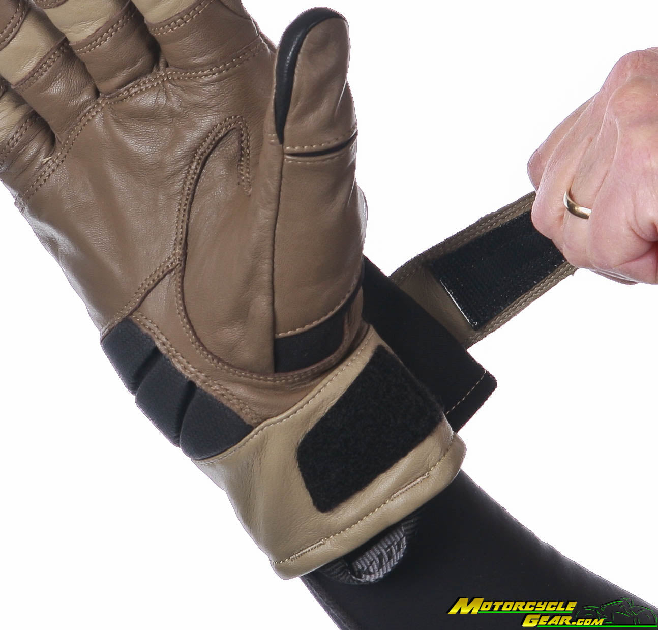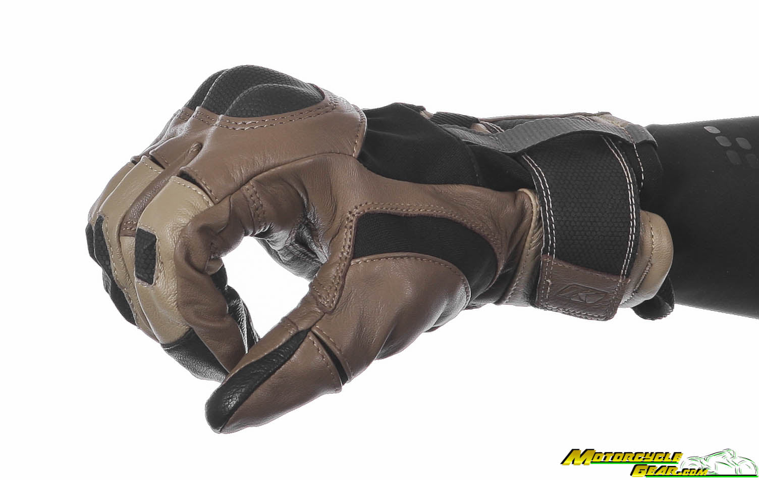 I’ve got the Tan color choice on my desk for this review and it looks great. The color combos would look great with many adventure style riding jackets from Klim or REVIT (or brands with similar styles). The printed ceramic material over the knuckles, fingers and in the palm of the hands adds to the survive-ability of the glove in case of a crash but also looks really good.
