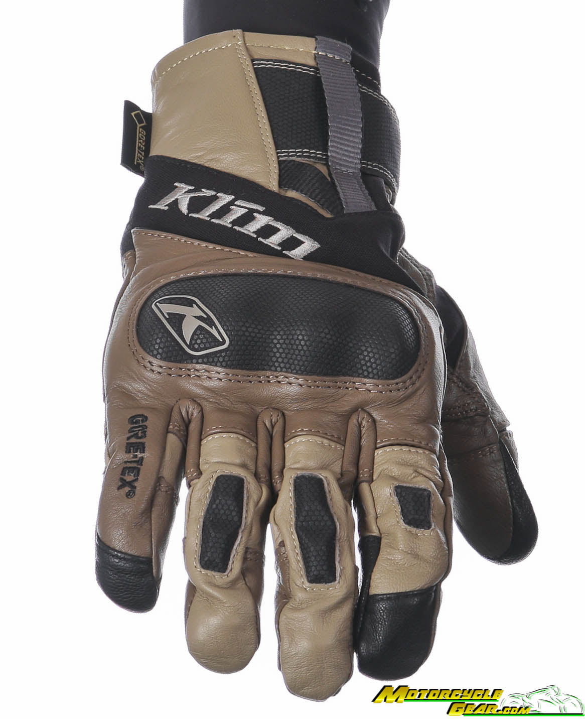 Klim says: The ultimate world-traveling, all-terrain waterproof leather glove. Extremely durable low-profile design loaded with innovative impact coverage technology and the superior grip of GORE-TEX + GORE GRIP, this is the high-mileage master of your adventure riding kit.