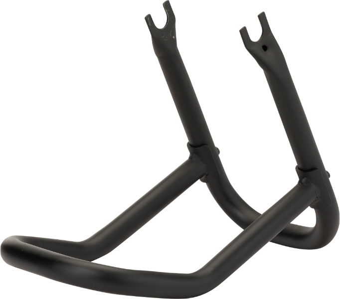 - Bikes' rear wheel fits conveniently between the vertical U shaped ends of the stand