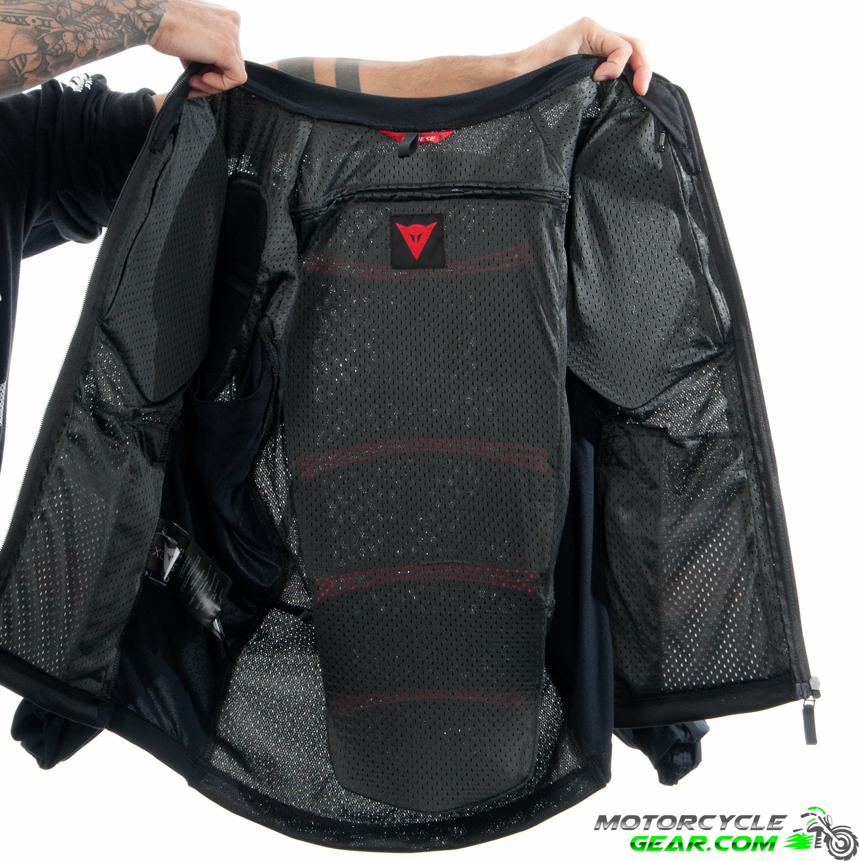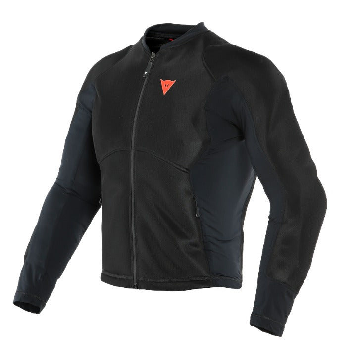 - Pro-Armor Safety Jacket 2.0 is designed to be worn individually in warmer climates, or under any jacket, ensuring all-round protection due to level 2 Pro-Armorprotectors on back, shoulders and elbows, and level 1 protectors on the chest.The possibility of longitudinal flexion and extension, in synergy with the adoption of the new extremely light Xelion 2.0 material on the chest protector and back protector, offers great freedom of movement and riding comfort.The perforated fabric guarantees a high degree of ventilation, also optimized by the special structure of the Dainese Pro-Armor protectors, inspired by fractals, flexible and highly ventilated, making the Safety Jacket versatile for use in all seasons.
