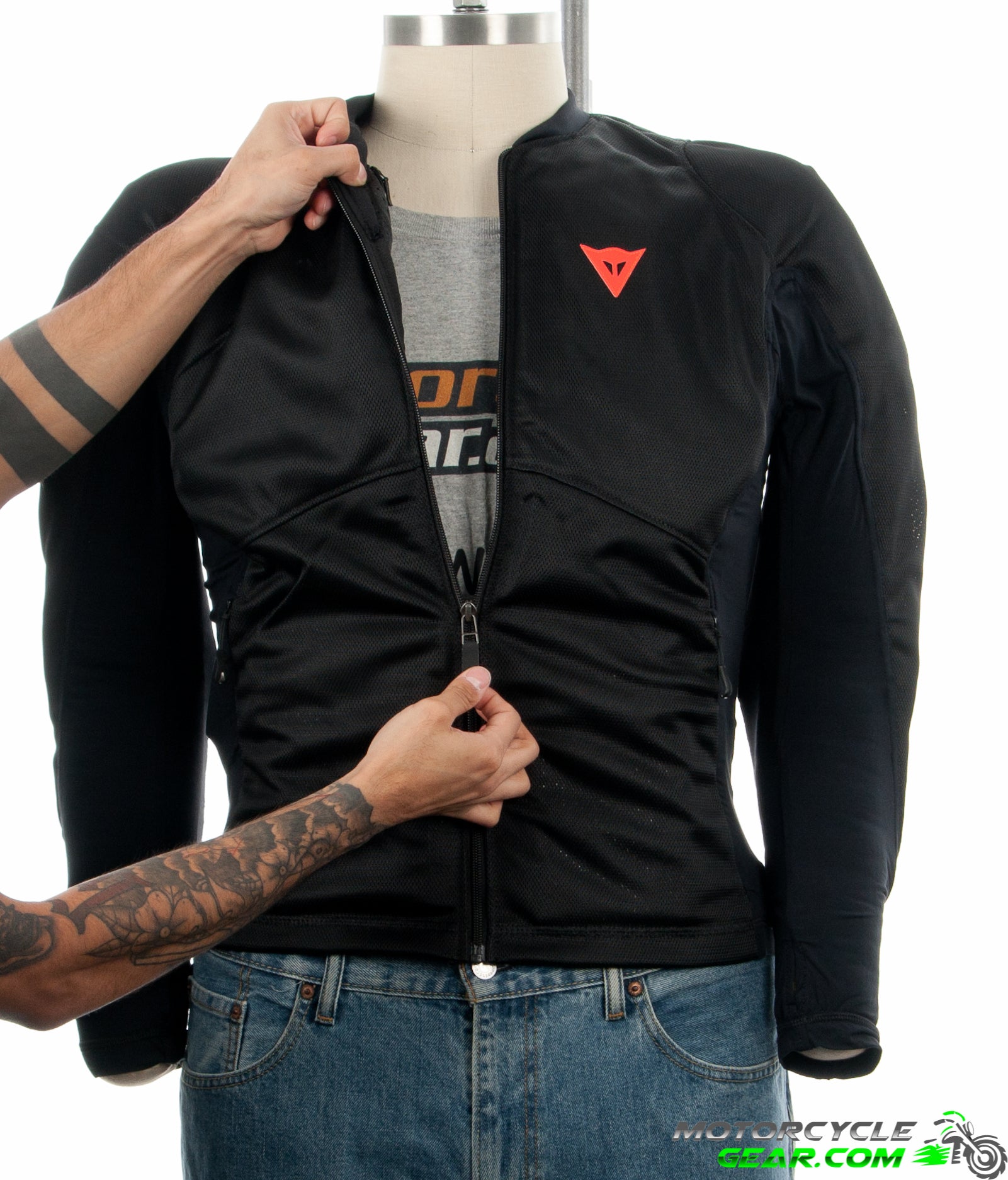 - Wearable under a motorcycle jacket