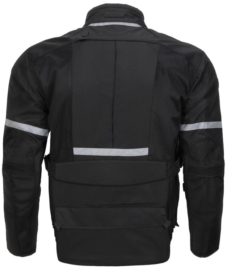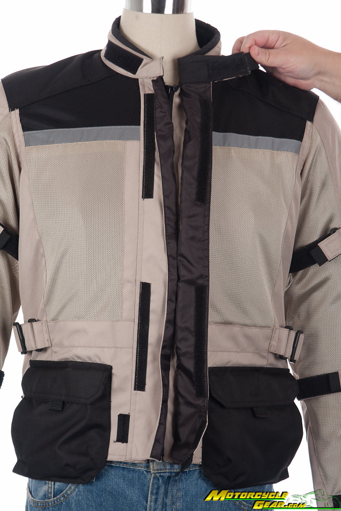 The overall fit of this jacket is similar to other US brands, which is to say, roomy through the torso with a relaxed fit. The overall height and sleeve length I’d say is “average” and is very similar to Tour Master products. If you are slim and tall, you may not fit a good fit here, but average or stout built people will probably be happy with the overall cut. A longer jacket like this is typically cut “boxy” but they have large side torso adjusters so even if you are slim through the belly you can get a good fit.