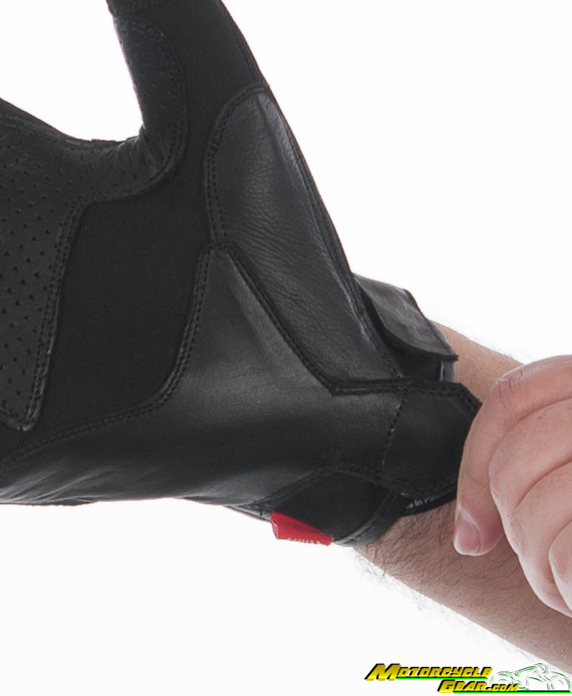 The finger seams are flat (externally) sewn for maximum comfort. There are accordion stretch panels on the index and middle fingers for ease of movement. The cuff has a single hook and loop closure with a leather overlay and a small pull tab to easily get into the gloves.