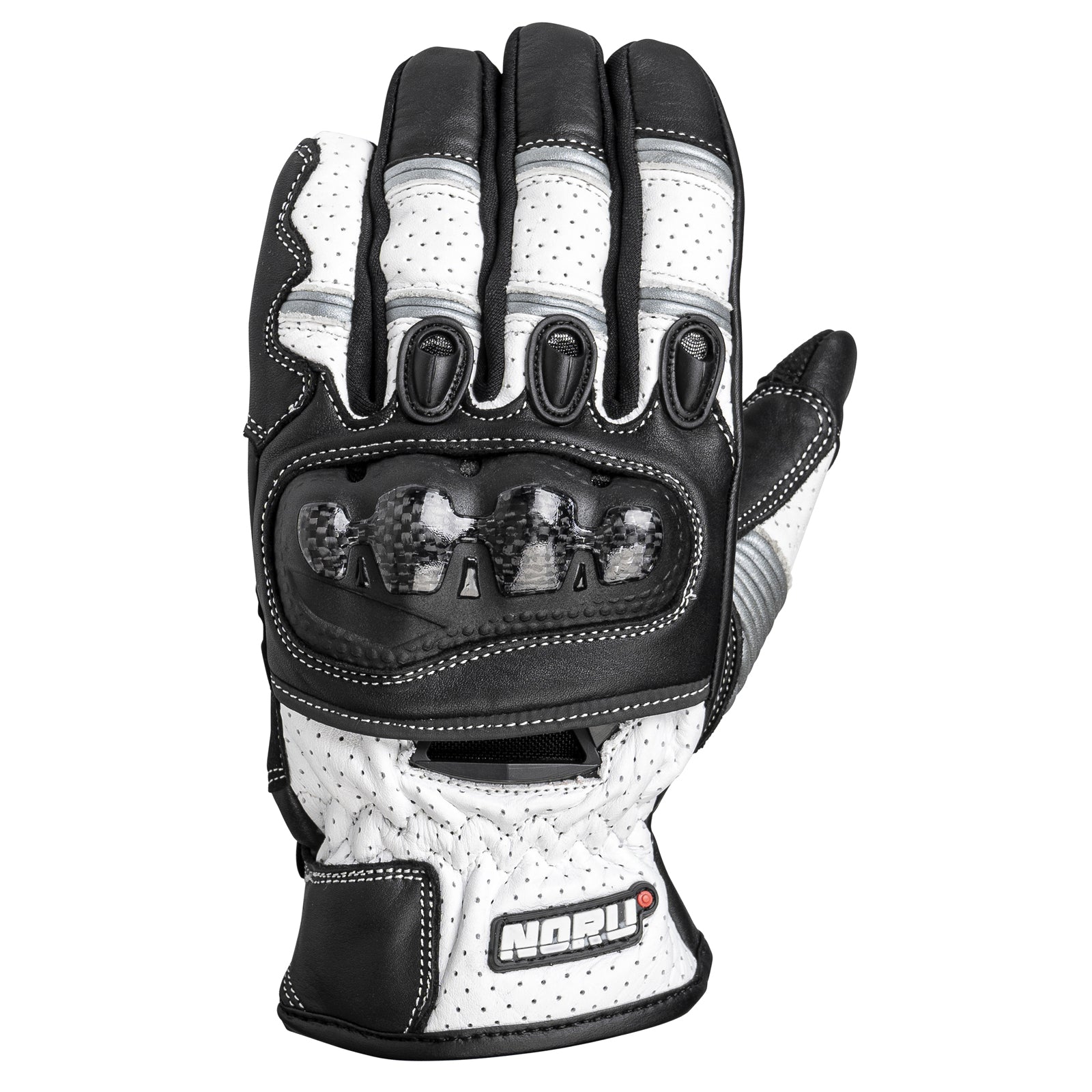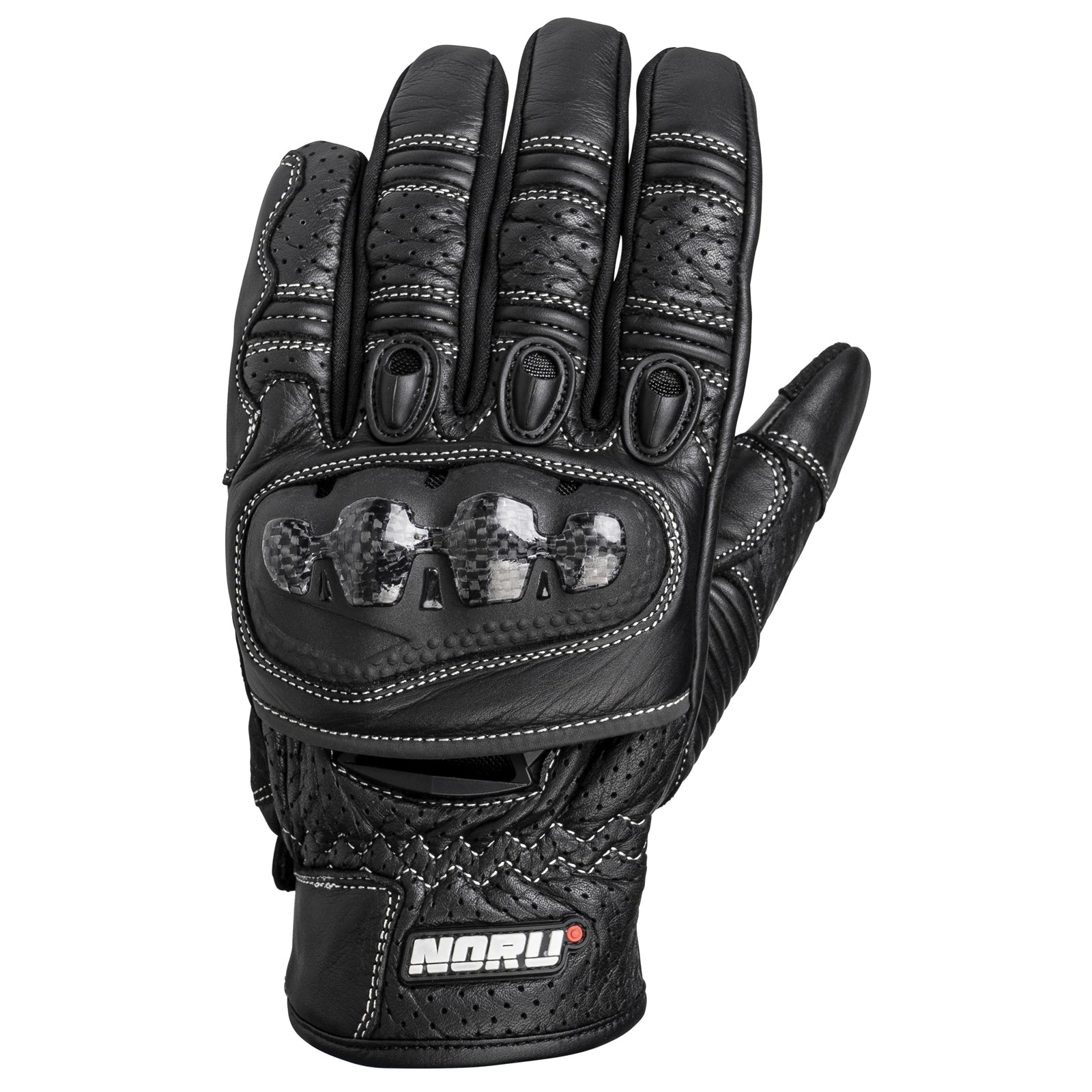 The Tekko glove from Noru is a short cuff, sport style glove that comes in three different colors. Coming in at the sub $60 price point these gloves are budget minded but still provide some features that are often seen on more expensive gloves, for example, perforated cowhide that provides abrasion resistance as well as airflow. Double layer palm sections for added abrasion resistance, double stitched sections, as well as thermo-set molded knuckle protectors that feature real carbon fiber. For additional performance the Tekko gloves from Noru also feature touchscreen compatibility that in testing worked well with both android and iPhone as well as a silicone print overlay at the palm for additional grip.