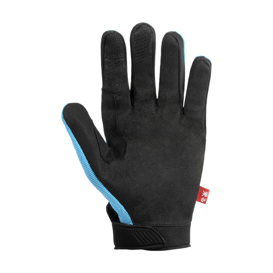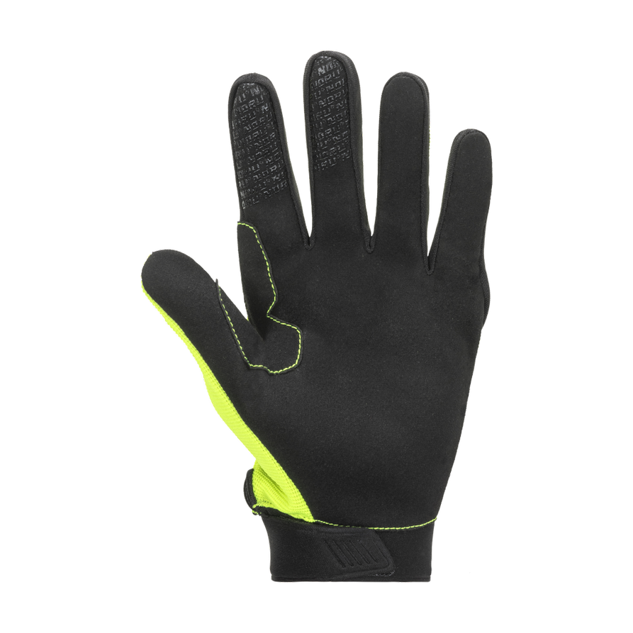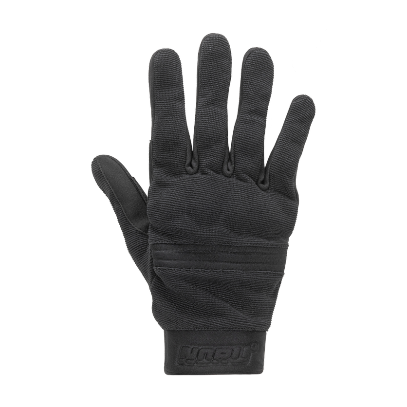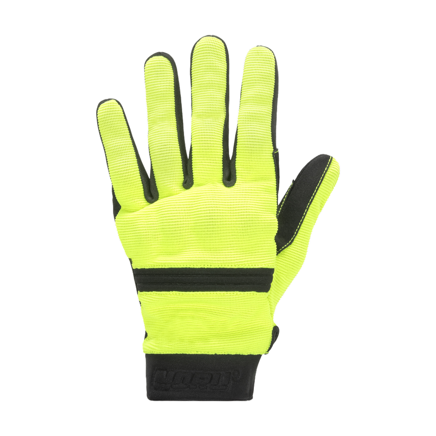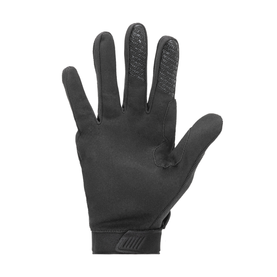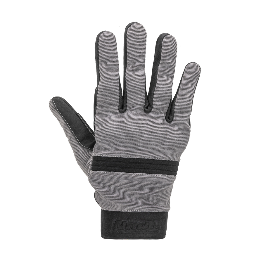 This glove is very simply made and is almost an off road style glove. It has a synthetic palm and overlays on the index and middle fingers to improve grip in wet conditions. There is a touchscreen tip on the index finger as well, and we found that the thumb also works on both Apple and Android phones. The thing that sets these gloves apart from an all out off road glove style is the knuckle protection. There is a connected knuckle protector and also individual protectors on the first knuckle of each finger. The short cuff closes with a hook and loop strap so you can adjust the fit to your liking.