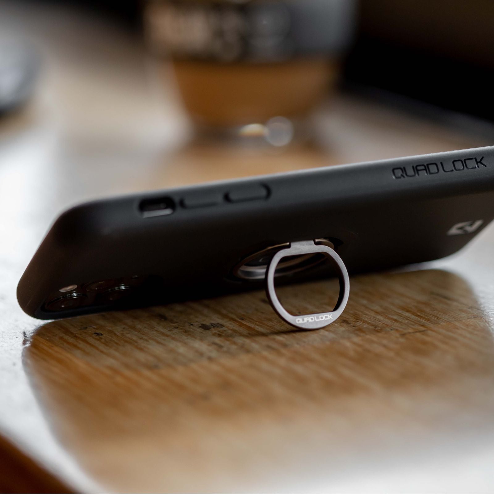 The Quad Lock® Phone Ring/Stand is compatible with all Quad Lock® Cases and Universal Adaptors, offering a secure grip and a kickstand for hands-free viewing. Easily attach or detach it, and keep it handy with the included carabiner.