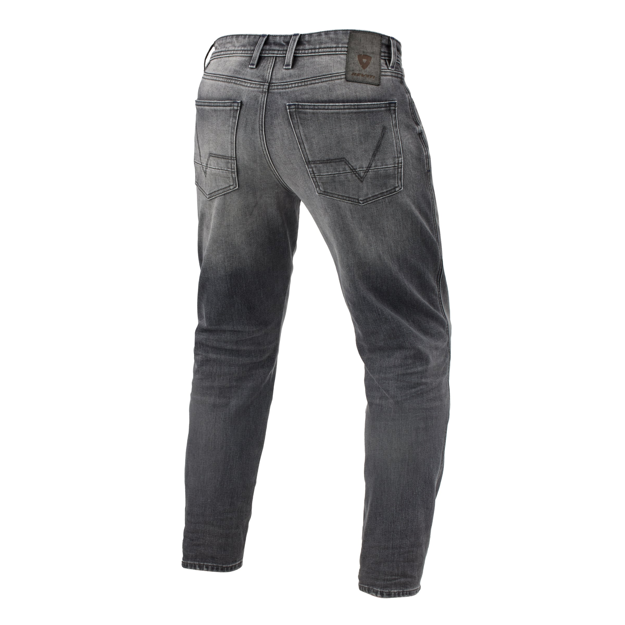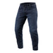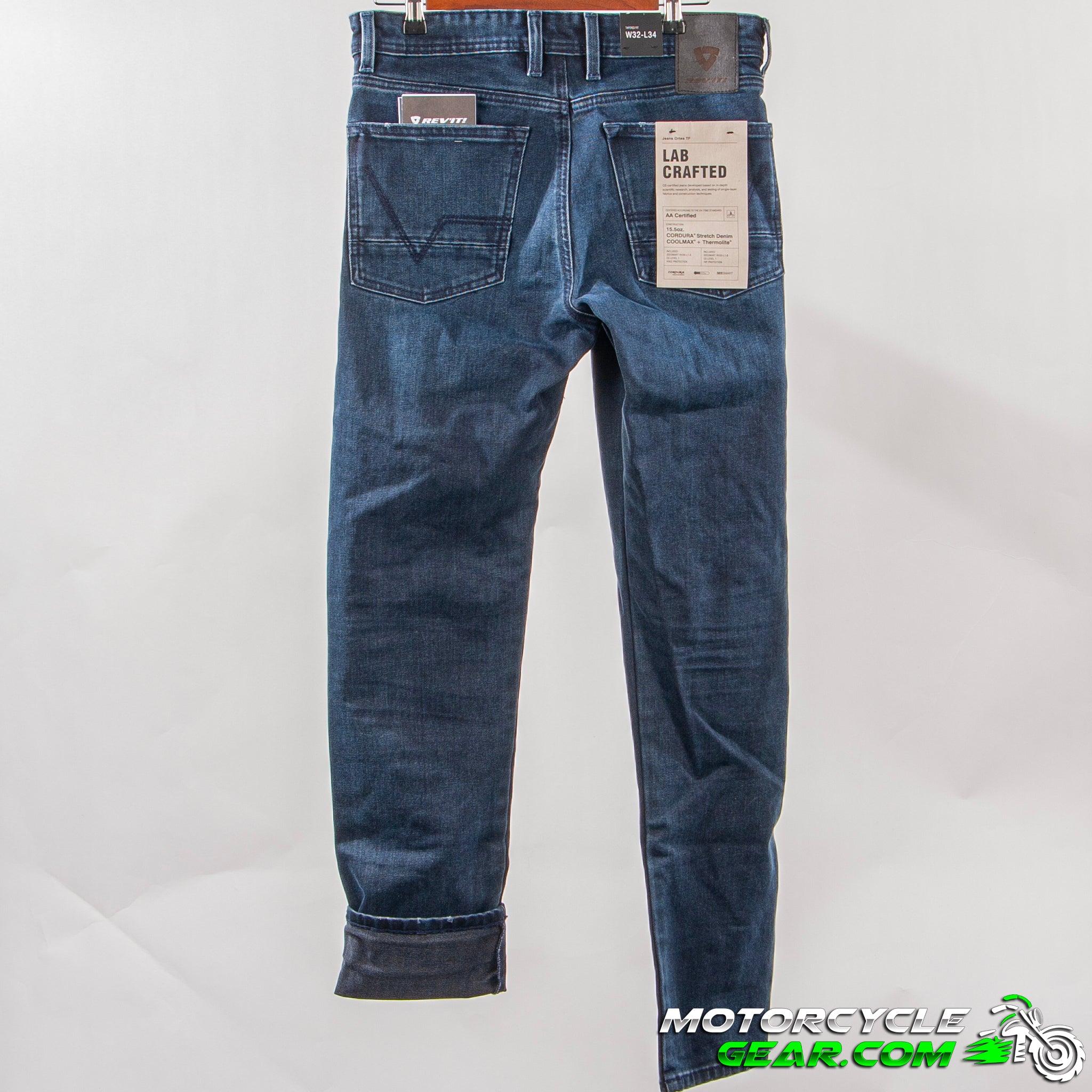 The Ortes TF Jeans from REV’IT! feature a tapered fit in a classic everyday 5 pocket jean design. The Ortes jeans are offered in both a medium kind of faded gray color as well as a more simple dark blue. The beauty of these jeans is that they very much look like normal jeans, and even with armor, which by the way is SEESMART CE-Level 1 at both the knees and hips, its hard for the untrained eye to notice that they are motorcycle jeans. This is quite impressive as these jeans feature a 15.5 OZ CORDURA® Construction as well as safety seams and triple needle stitching combine with the above mentioned armor, this combination resulted in a CE AA rating. Again, really impressive for a pair of jeans that the untrained eye would consider to be normal.