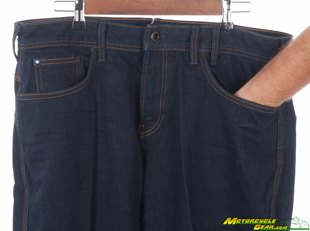Note: Jeans may ship with tags showing the colorways "Dark Blue Used" or "Medium Blue Used." "Used" is a naming convention from REV'IT! describing the distressed wash of the jeans, not their condition.