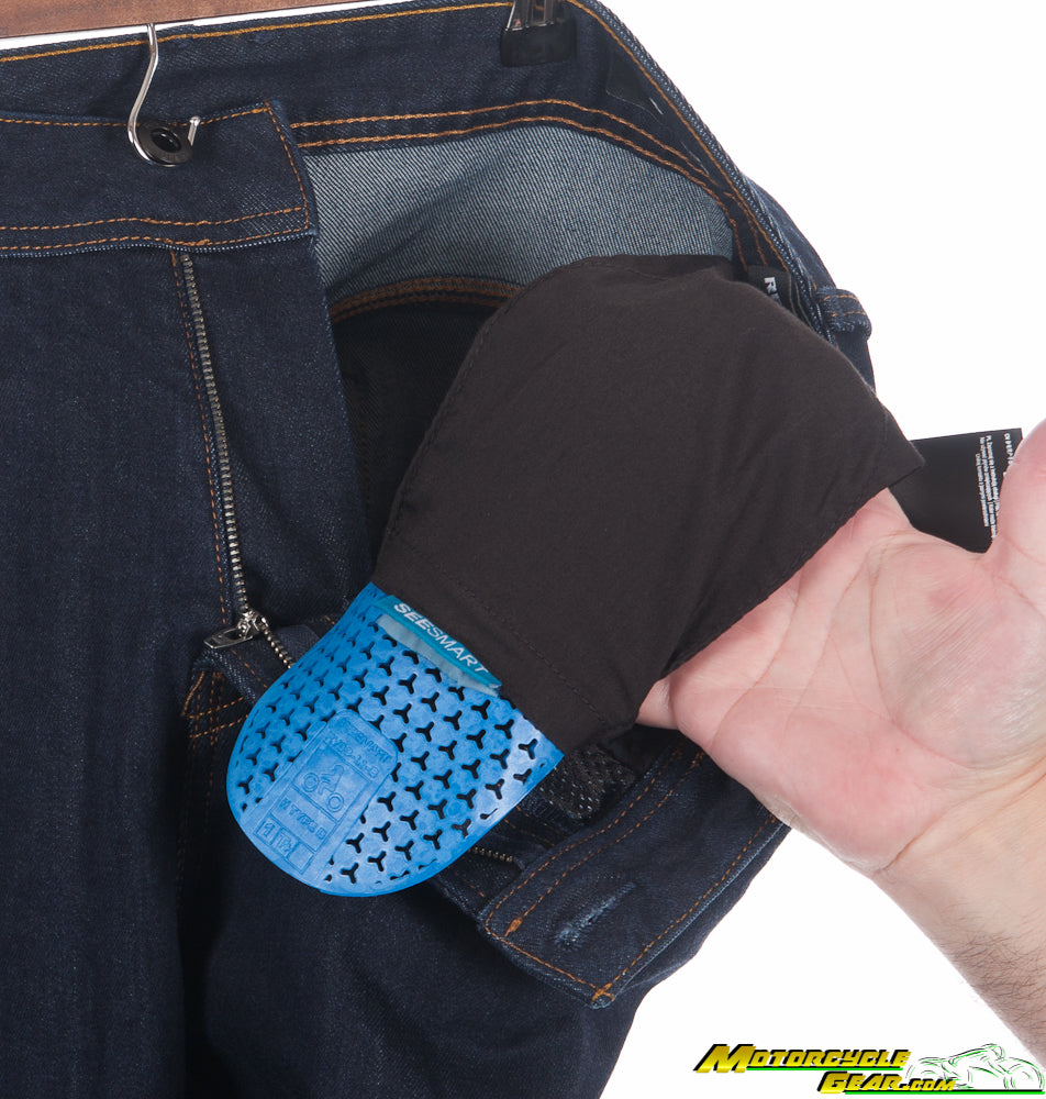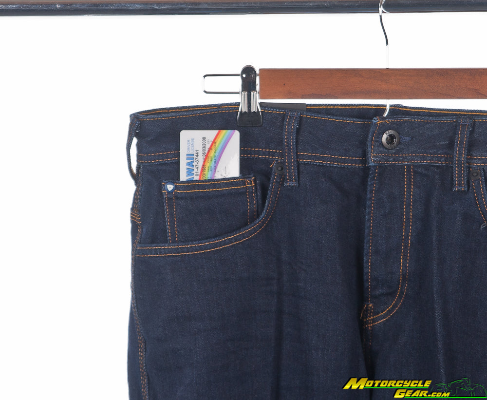The Philly 3 LF jeans are made from a 15 oz. Cordura® denim that offers quite a bit of 4-way stretch. The LF = loose fit style of this pant means the stretch isn’t really necessary, but it is a nice extra level of comfort. The pants do not really taper as you go down the leg and they are essentially straight leg jeans. Externally the jeans have the appearance of a typical designer jean with two hand pockets and two hip pockets and a fifth pocket in the right hand pocket for change or keys. There is nothing to give away the protection that lies beneath.