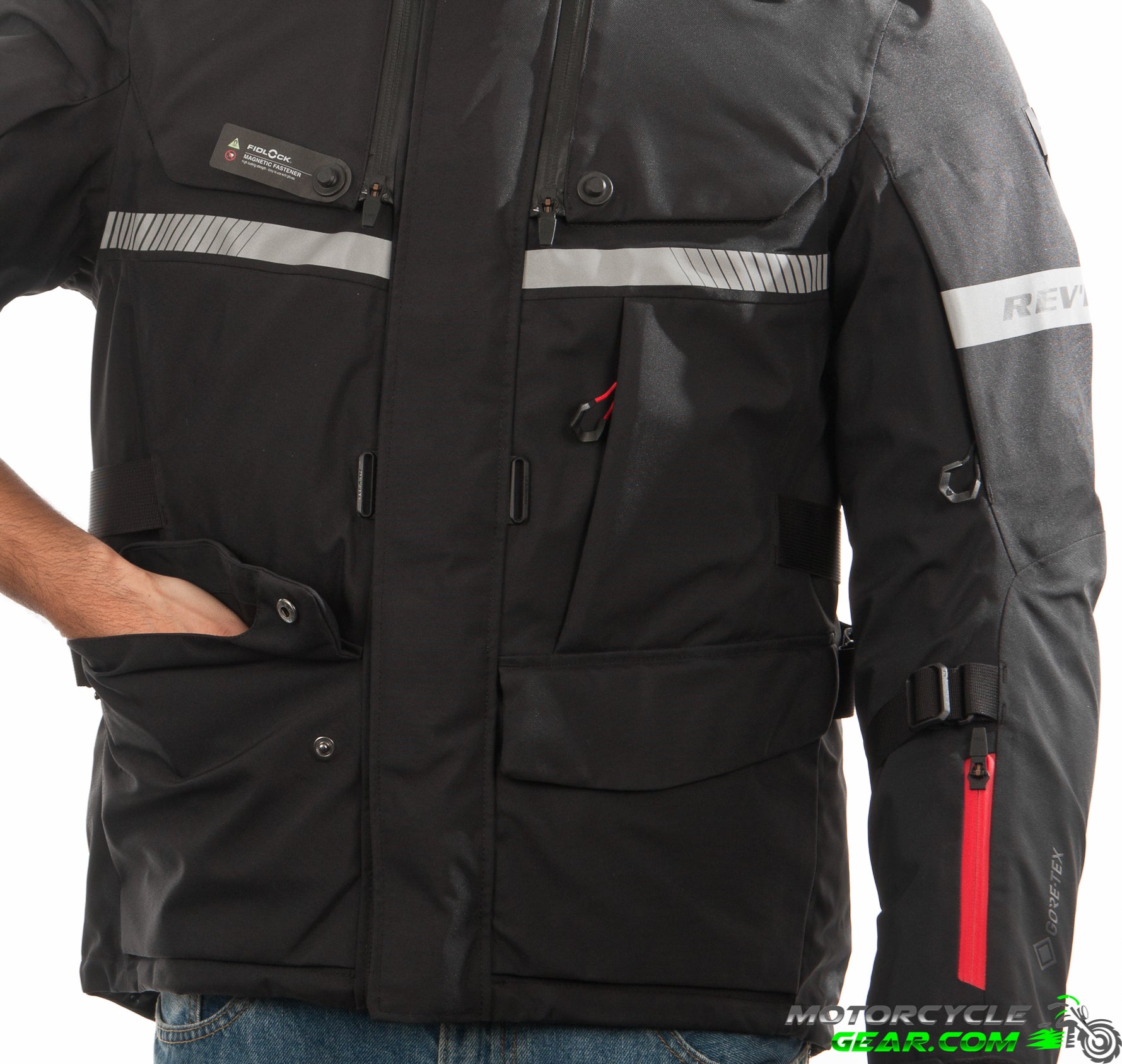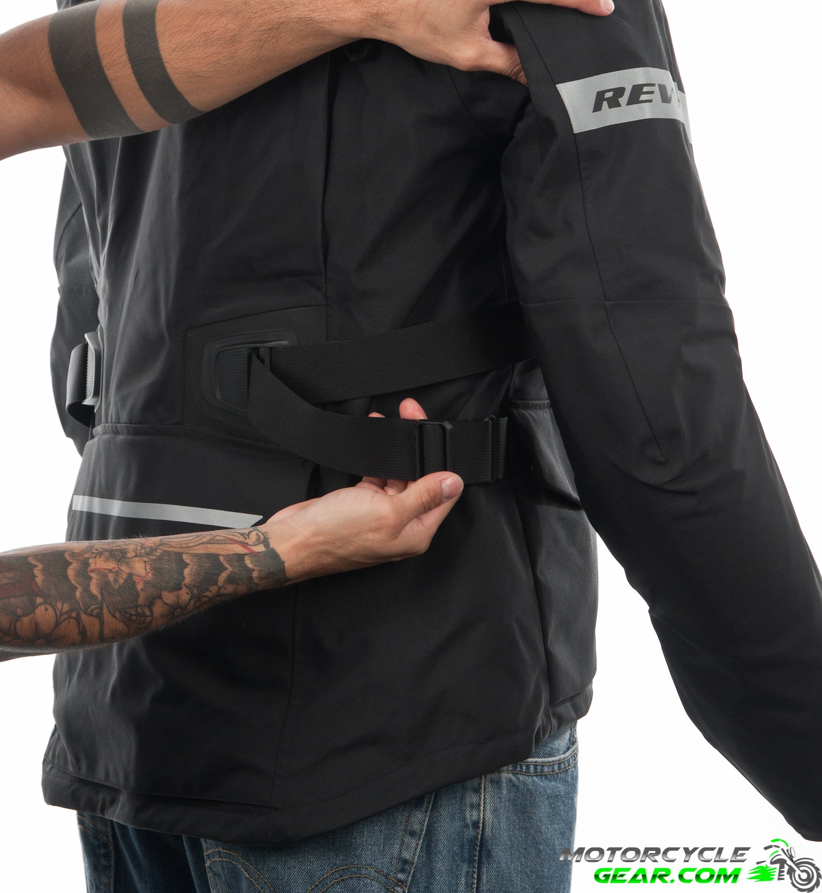 Below is the REV’IT!-published chest size for each jacket’s alpha size along with our estimate of max chest and max waist/belly. This particular style is not a “sport” oriented style so there is not a lot of taper from chest to waist, and with a style like this you can effectively tailor the fit of the waist with the side waist adjusters, which makes the jacket look great and fit great, so don’t worry if your waist/belly is smaller than the max. We only list this for those that have a belly so they can know what minimum size they’d have to choose to fit the belly.