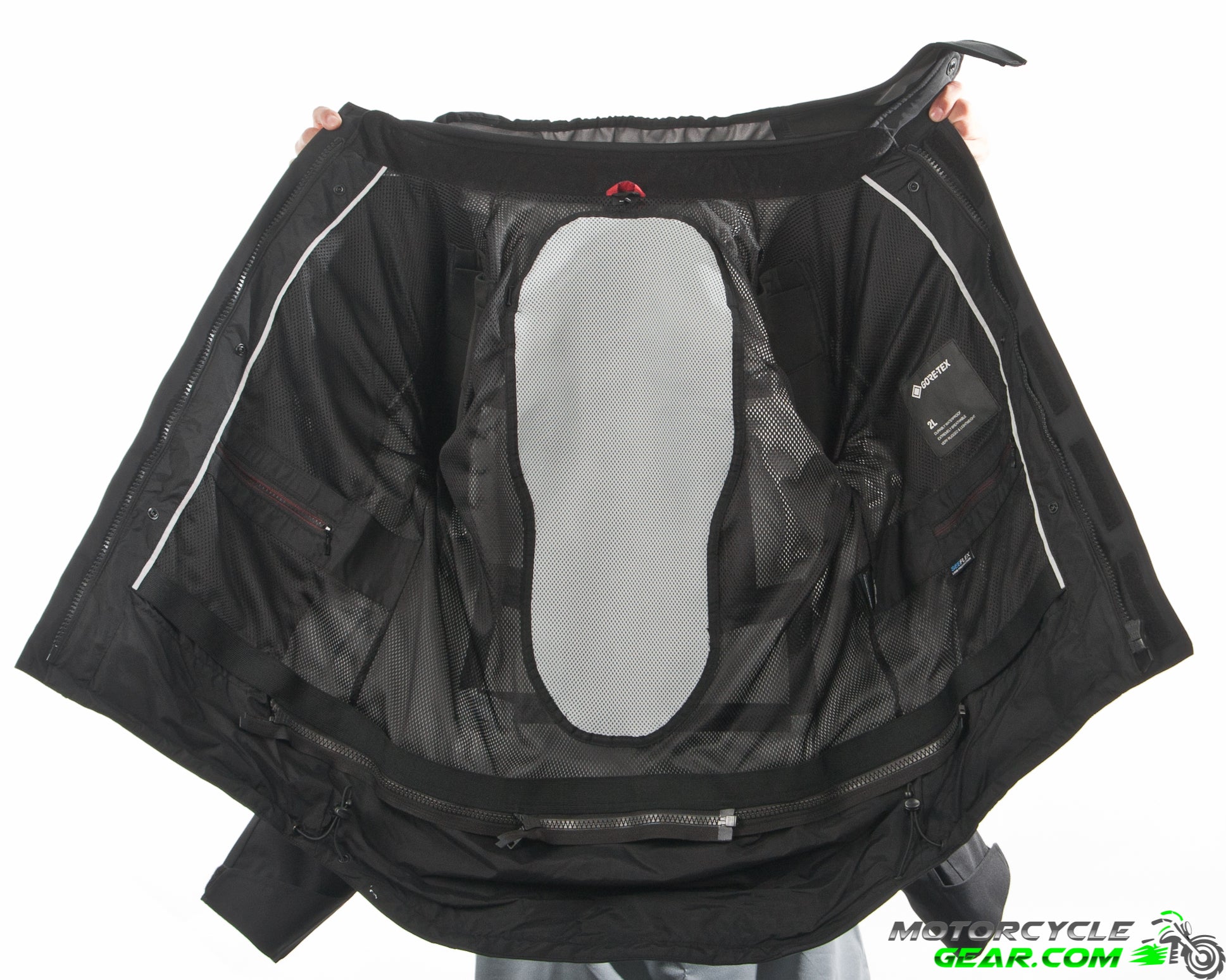 Clever combinations Carefully chosen materials balance breathability and range of motion. Inside, there’s a detachable thermal liner while the outer shell blends two- and three-layer GORE-TEX for zero water ingress. Remarkable resistance to cuts, tears, and abrasion makes this go-anywhere jacket even more rugged, and CE-rated armor envelops your elbows, shoulders, and chest. Plus, there’s an optional back protector-ready insert.