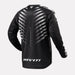 The REV’IT! Rough Jersey pays tribute to factory-sponsored pro riders and – for the first time – makes the full-size REV’IT! shield graphic available to the public. Built entirely with moisture-wicking polyester fabrics, the Rough Jersey is cut for a relaxed fit. The Rough Jersey fits comfortable with base layers and body armor. The aggressive chevron design continues to the rear.