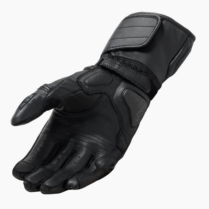 The RSR 4 motorcycle gloves claim their spot within our Sport hand protection collection, offering a complete package to riders without going full spec. The highly abrasion-resistant leather outer shell has armoring features such as a carbon hard knuckle protector, a hard-shell palm slider, and a TPU wrist protector on the double closure long cuff. These motorcycle gloves offer the highest level of comfort on warmer summer days thanks to ventilation panels at the fingers.