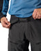 Laser-cut holes along the thighs provide excellent ventilation, ensuring you remain cool during intense rides. The waistband has been redesigned, replacing the plastic ratchet with a more durable belt featuring an aluminum buckle, inspired by the sleek design of the Surface. Pockets have been repositioned towards the front of the thigh and now include an expansion V-flap, allowing easy access even while seated.